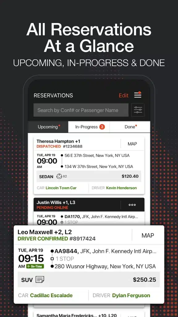 - Driver mobile tools: Keeps chauffeurs updated with real-time trip information.